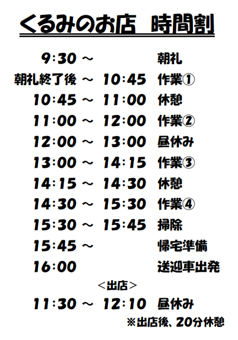 また、愛知県立尾北高等学校さん(昼食がある授業日/くるみのお店定休日の木曜日は除く)、ゴルードエイジ江森さん(月1回)にて、パン・クッキー等の出張販売を行っています。